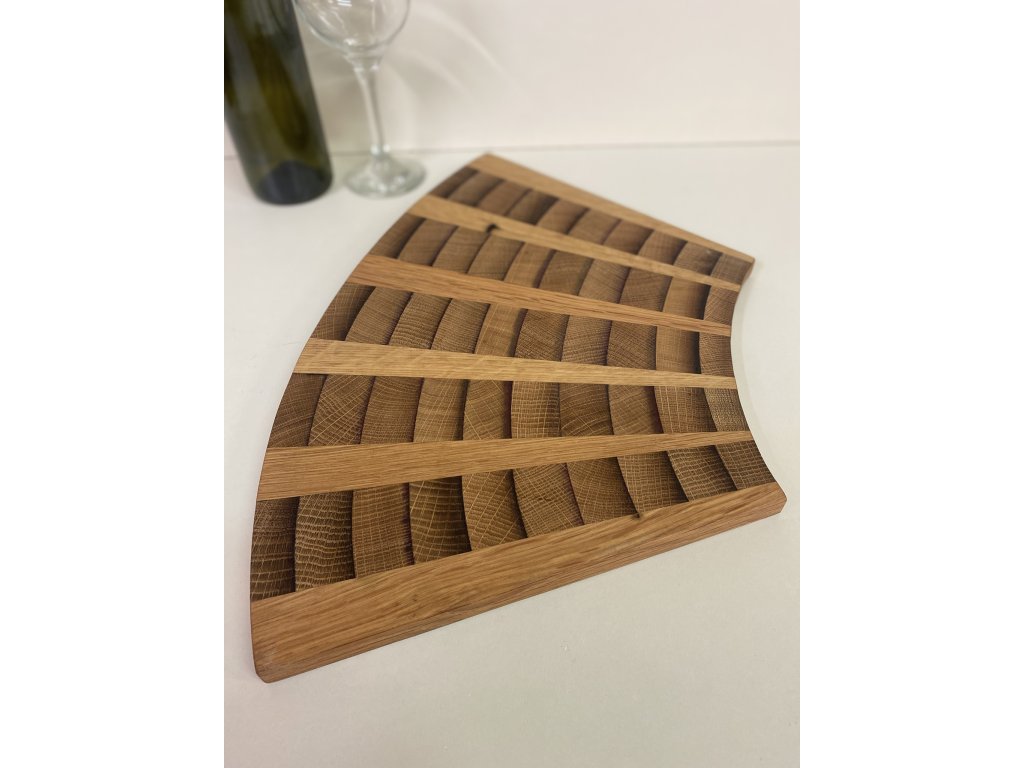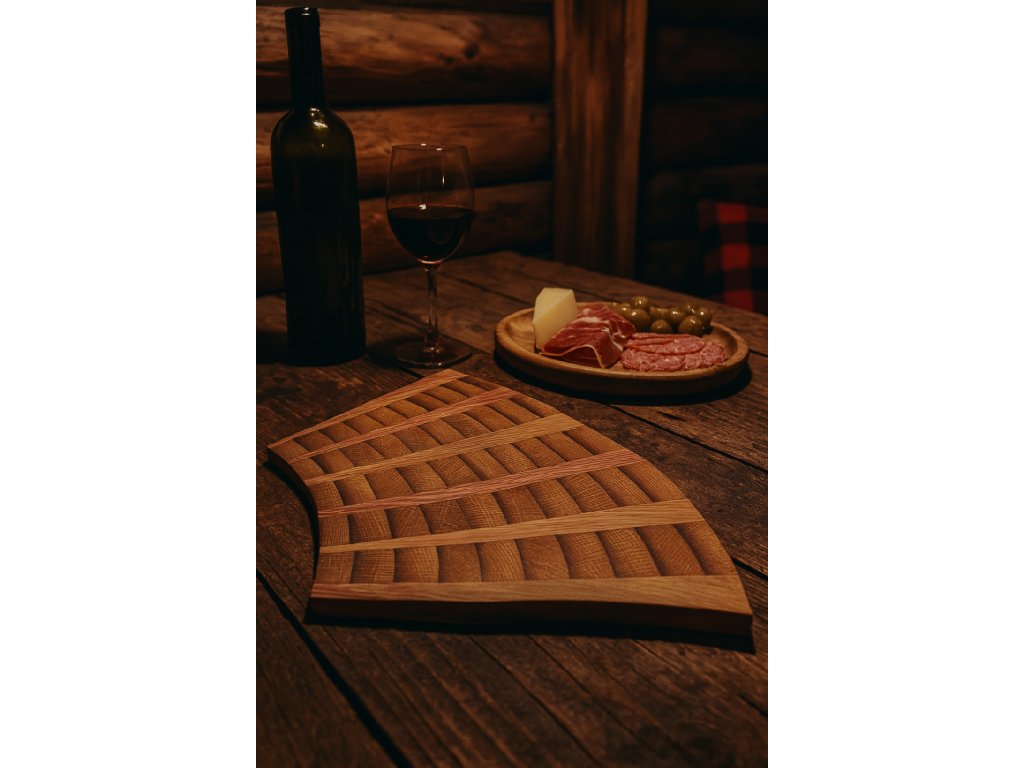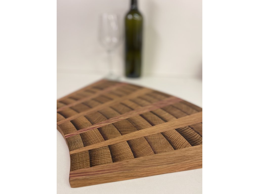 Servírovací prkénko z dubových sudů, ve kterých několik let zrálo víno. Každý kus nese patinu, historii a příběh sudu, ze kterého pochází. Díky tomu je každé prkénko naprostý originál – spojuje v sobě luxus, jedinečnost a originalitu. Precizní ruční práce dává vyniknout kráse starého dřeva a činí z prkénka stylový a praktický doplněk pro servírování sýrů, uzenin i dalších specialit. Prkénka jsou ošetřena 100% přírodním lněným olejem se včelím voskem, určeným na styk s potravinami.