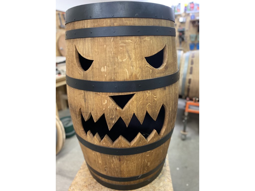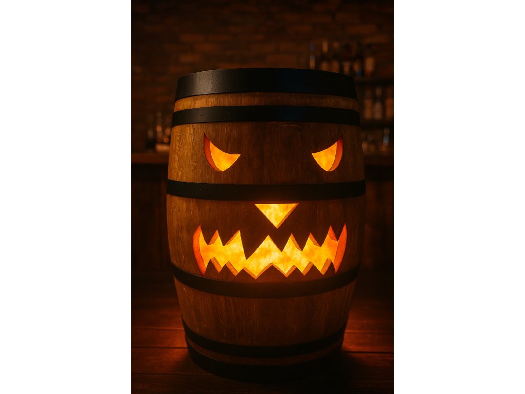 Unikátní halloweenský sud vyrobený ze starého dubového barrique sudu, ve kterém několik let zrálo víno. Každý sud je precizně ručně vyřezán do strašidelného motivu a stává se tak výraznou dekorací pro Halloween, zahradní párty či stylové interiéry. Díky své patině, historii a příběhu vína je každý kus naprostým originálem. Spojuje v sobě ruční práci, jedinečnost a originalitu, která dodá vašemu prostoru neopakovatelnou atmosféru.